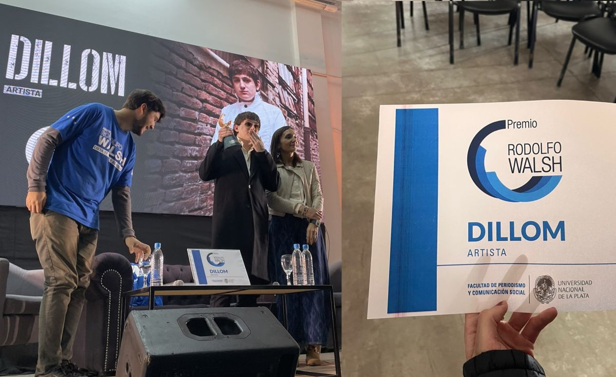 “Recibir este premio, tan prestigioso de una institución como la UNLP es un honor enorme”, dijo este viernes Dylan León Masa, el artista que alcanzó la popularidad como Dillom cuando alzó la estatuilla que representa el Premio Rodolfo Walsh, que cada año entrega la Facultad de Periodismo y Comunicación Social (FPyCS).